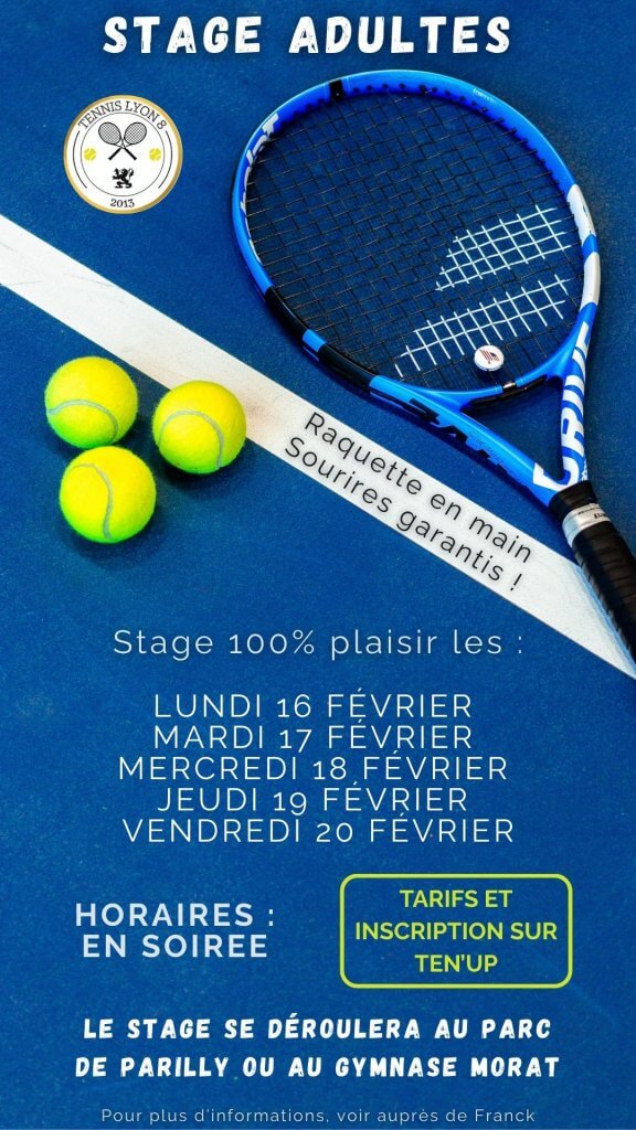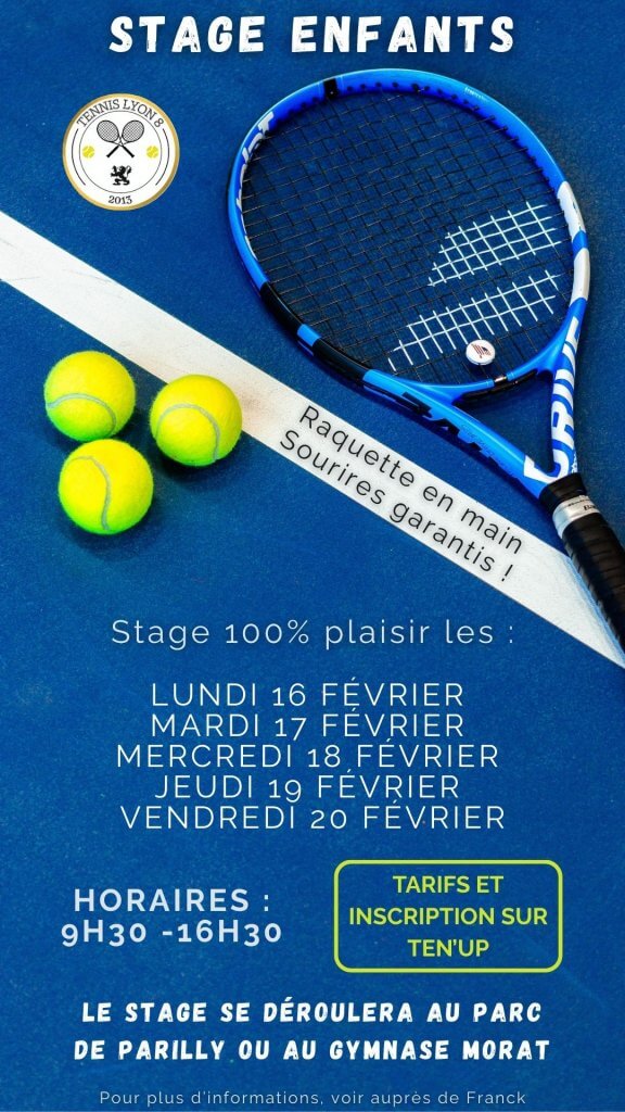 Les inscriptions pour les stages adultes et enfants de l’été sont ouvertes ! Venez profitez du bon temps sur les terrains de tennis de Parilly !